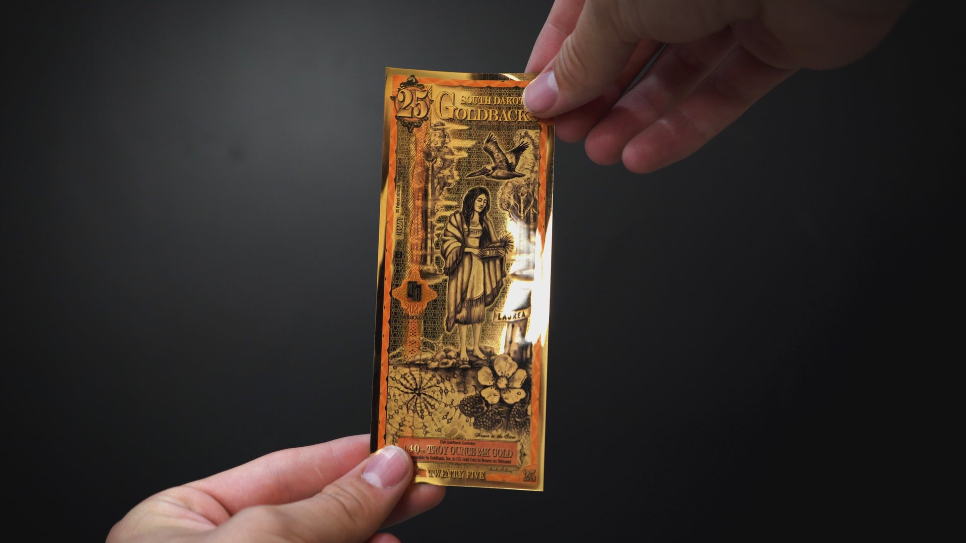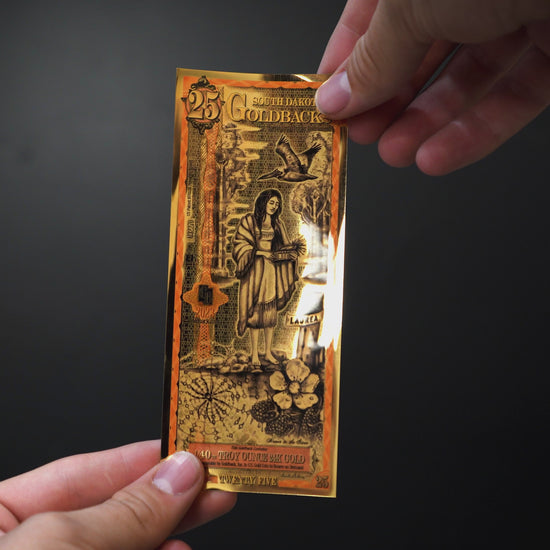 El billete de 25 dólares de Dakota del Sur contiene 1/40 de onza troy de oro de 24 quilates. Este billete forma parte de la primera moneda de oro voluntaria y gastable, ideal tanto para coleccionistas como para el uso diario de oro fraccionario.