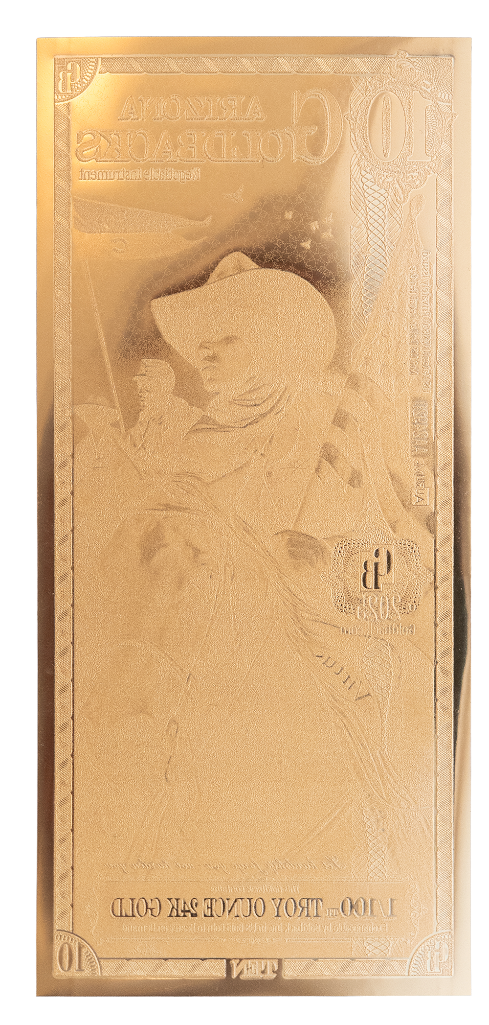La serie Arizona Goldback es la última incorporación a la serie. Los Arizona Goldbacks presentan obras de arte originales que celebran el rico patrimonio cultural, la historia y la belleza natural del estado. Cada diseño presenta figuras alegóricas que encarnan virtudes atemporales entrelazadas con la historia de Arizona. ¡Las obras de arte de estos Goldbacks estarán disponibles próximamente!