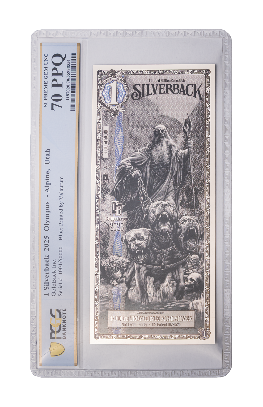This Limited Edition Hades Standard Graded Silverback is a distinguished silver collectible that seamlessly blends precious metal content with timeless artistic design. Each piece contains 1/1000th of a troy ounce of pure silver, offering collectors a compact yet distinctive silver trading collectible. Professionally graded by PCGS with a flawless 70 PPQ designation, this Silverback represents an exceptional addition for discerning precious metal enthusiasts.